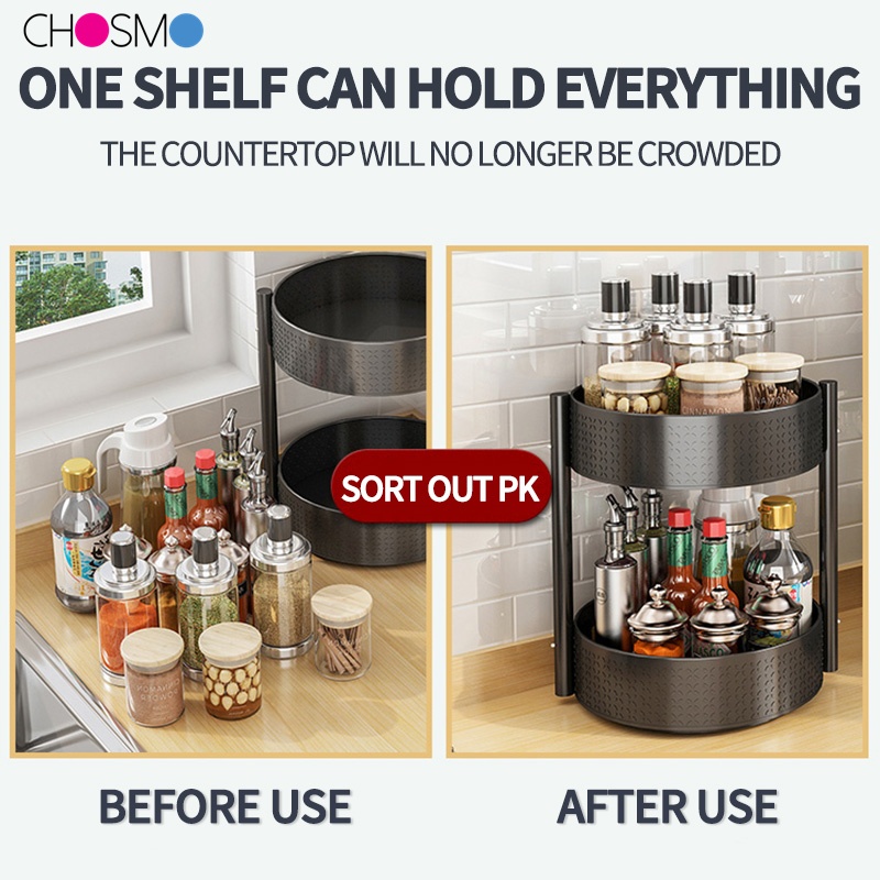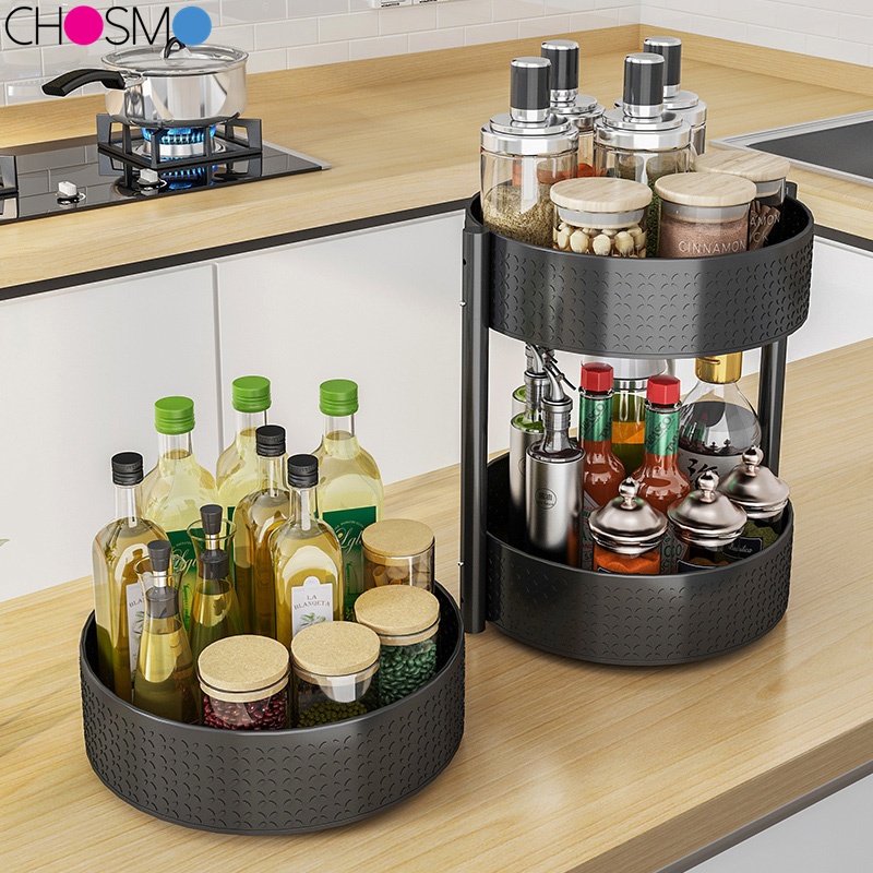Rak Tray Tatakan Nampan Botol Bumbu Kosmetik Putar Rotasi 360