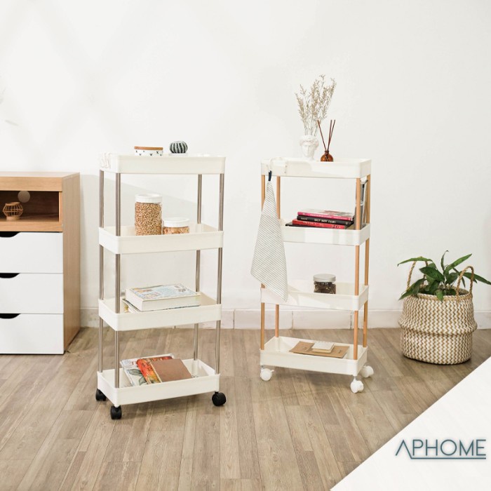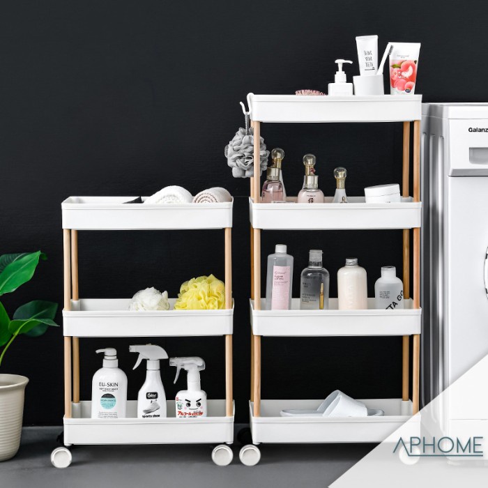 Rak Troli Rak Susun Rak Buku Rak Roda Rak Selip Rak Slim Ramping - 4 Tingkat Bambu