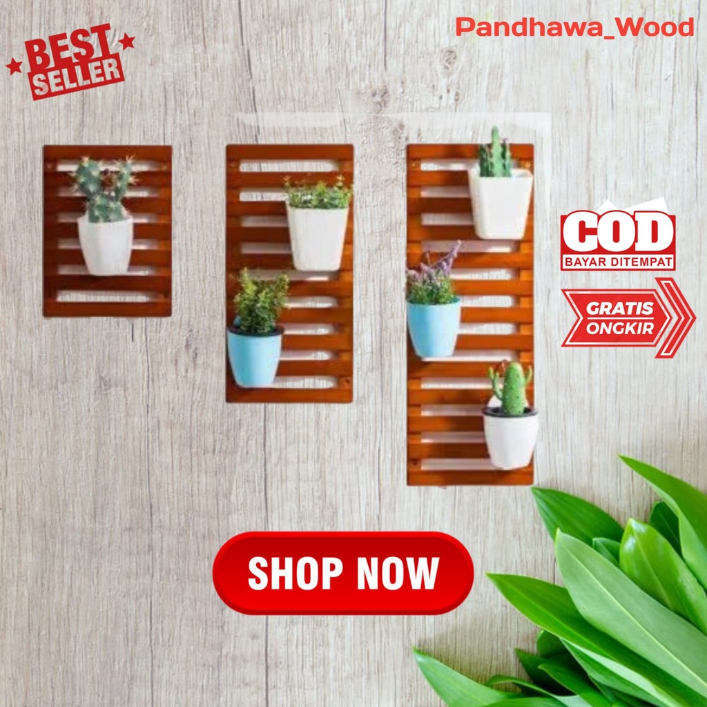 Rak bunga kayu tempel dinding model tangga Jati Belanda