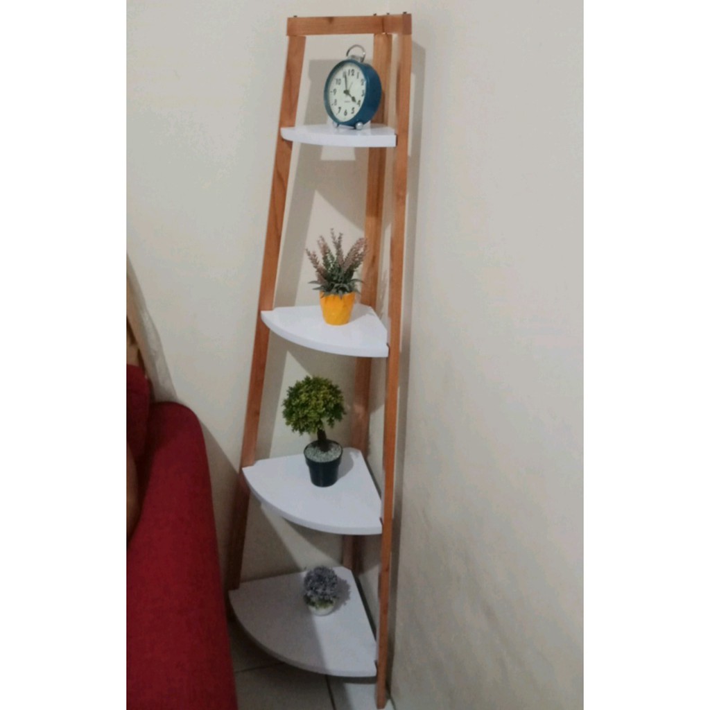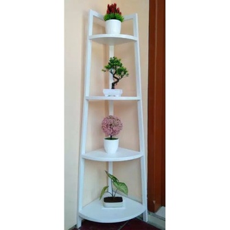 Rak bunga sudut minimalis 4 susun bahan kayu jati