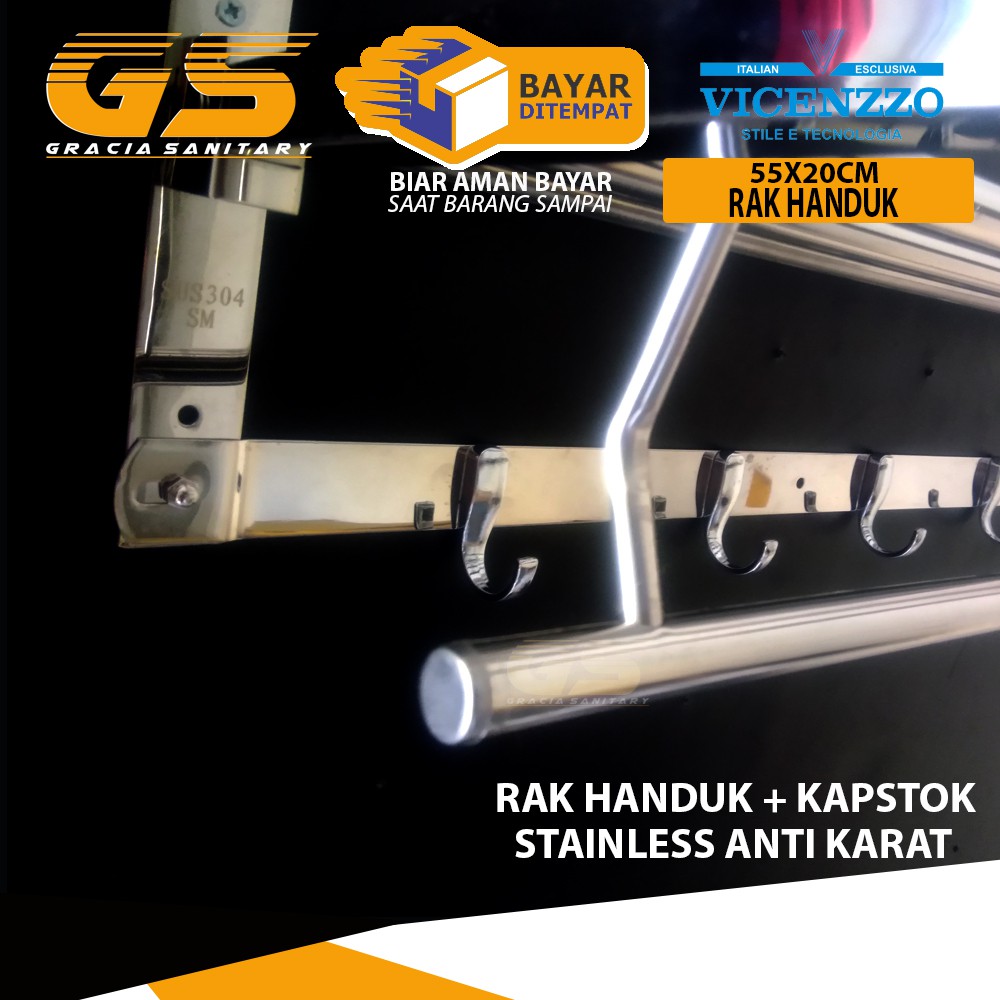Rak handuk kamar mandi 5 baris stainless stell / Kapstok Baju Dan Handuk / Gantungan Baju / Tempat Handuk