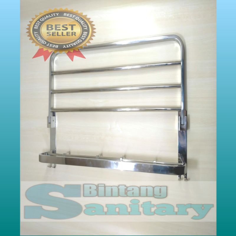 Rak handuk lipat stainless 2 susun / gantungan handuk lipat stainless
