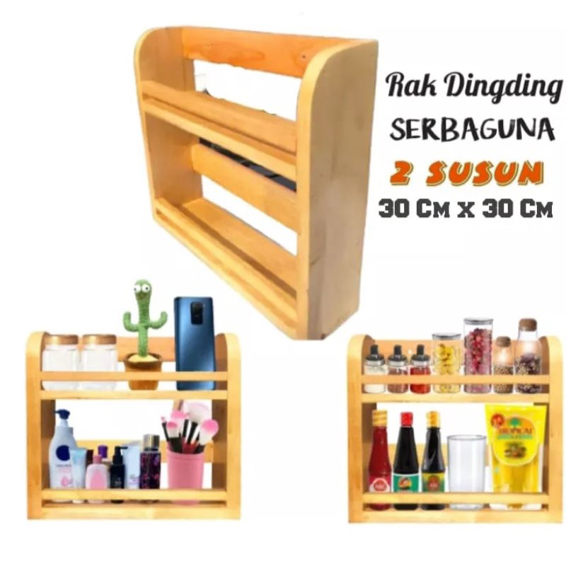 Rak tempat bumbu dapur susun 2 kayu terlaris