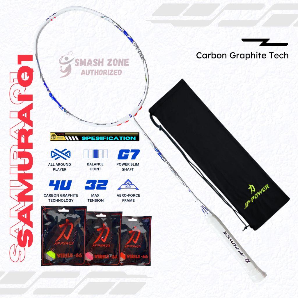 Raket Badminton JP Power SAMURAI Q1 Special Edition Original 32 Lbs Frame Raket Bulu Tangkis 4U Carbon Technology