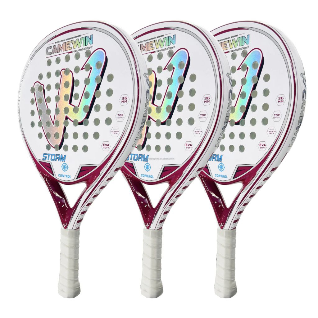 Raket Padel / Paddle Pink Hologram bahan Carbon (FREE Cover + Handgrips)