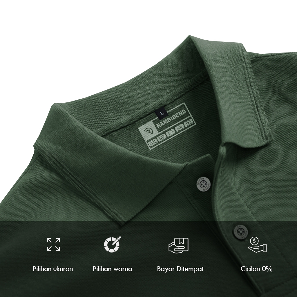 Rambidend - Polo Shirt polos Terkeren T-Shirt Baju Santai Baju Kerja Baju Kerah Brand Quality Hijau Botol