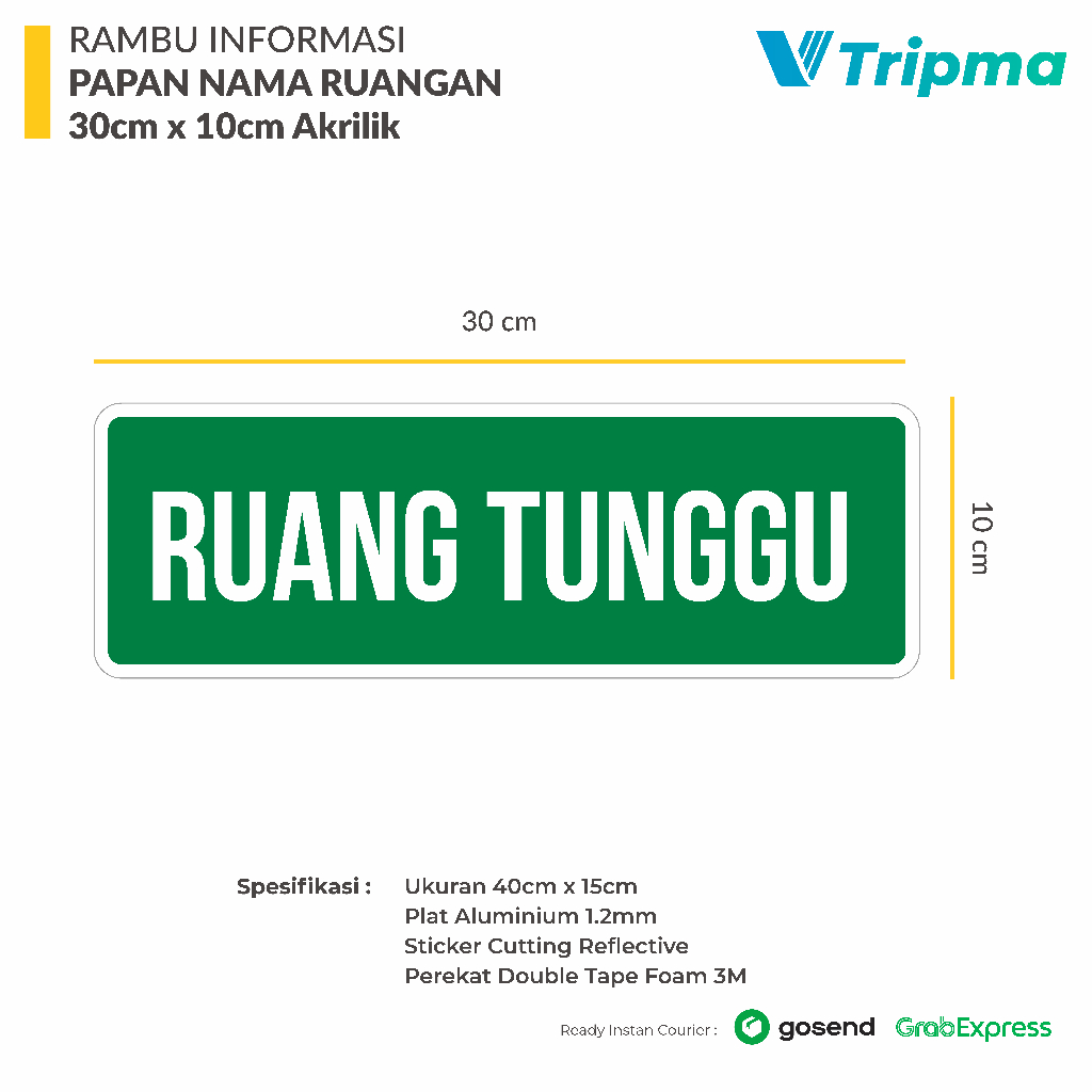 Rambu / Sign Nama Ruangan - Nama Area Kerja - 30cm x 10cm Acrylic