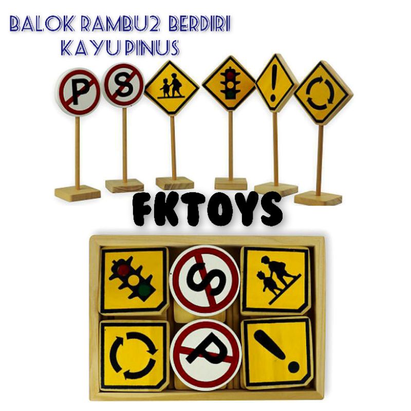 Rambu2 berdiri kayu pinus mainan edukasi