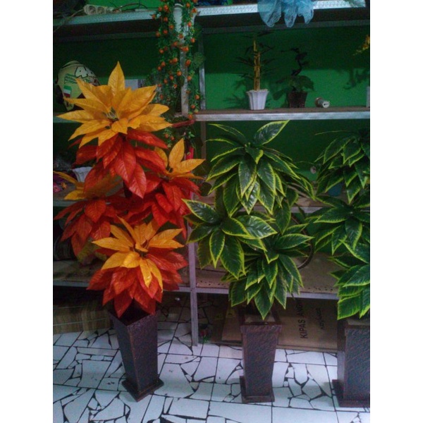 Rangkaian Bunga Hias Artificial Bunga Sudut Daun Mangga tinggi 130cm