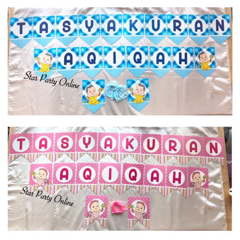 Rangkaian Tasyakuran Aqiqah / Banner Aqiqah / Dekor Aqiqoh Anak / Bunting Flag