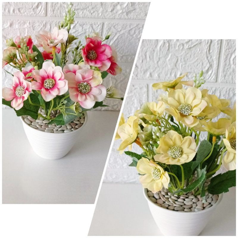Rangkaian bunga Chrysant Glitter warna pastel pot 10 cm