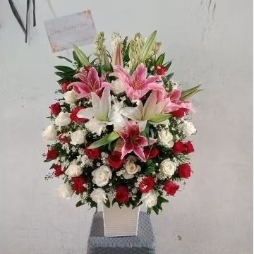 Rangkaian bunga mawar mix bunga lili dan sedap malam