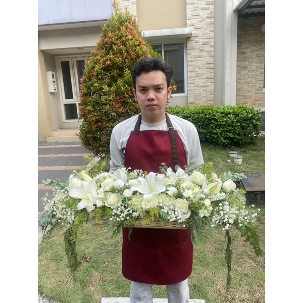 Rangkaian bunga segar altar misa sembahyang vas