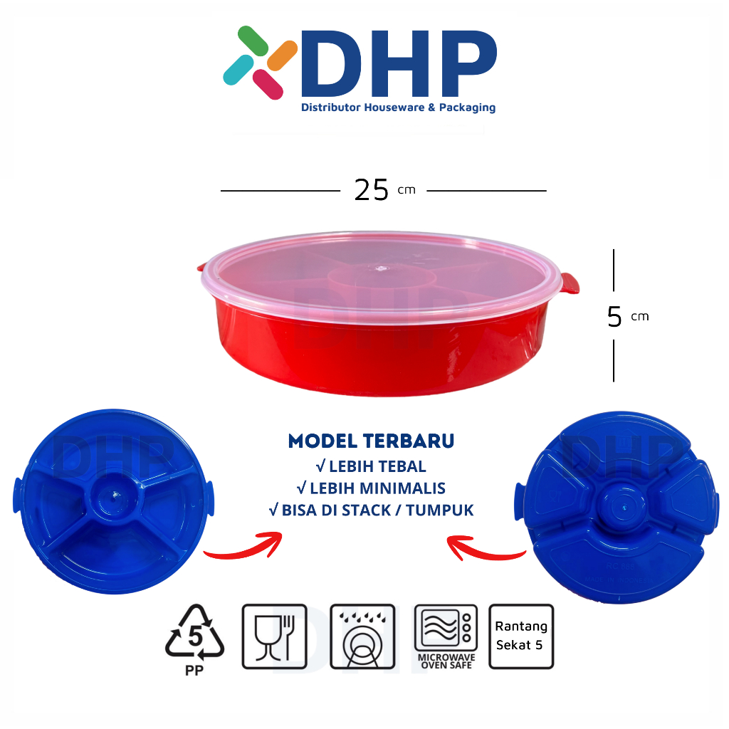Rantang 5 Sekat (SATUAN) Kotak Makan Bulat Susun Catering Picnic Food Container Plastik Murah Wadah Penyimpanan Makanan