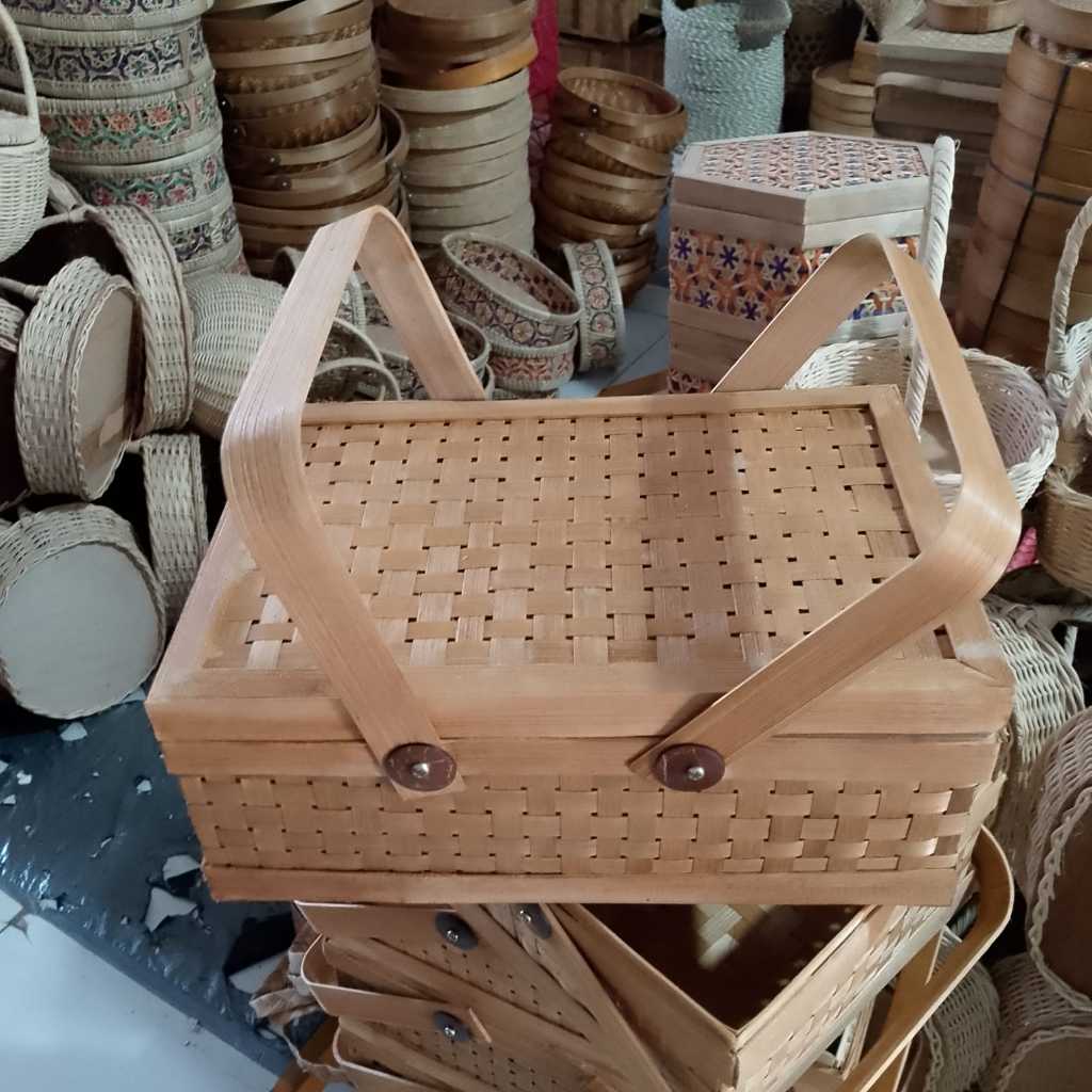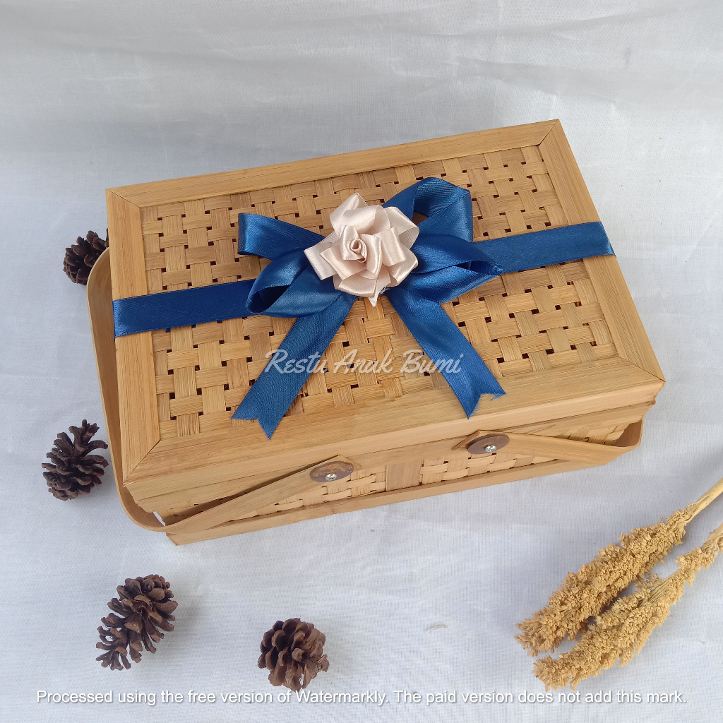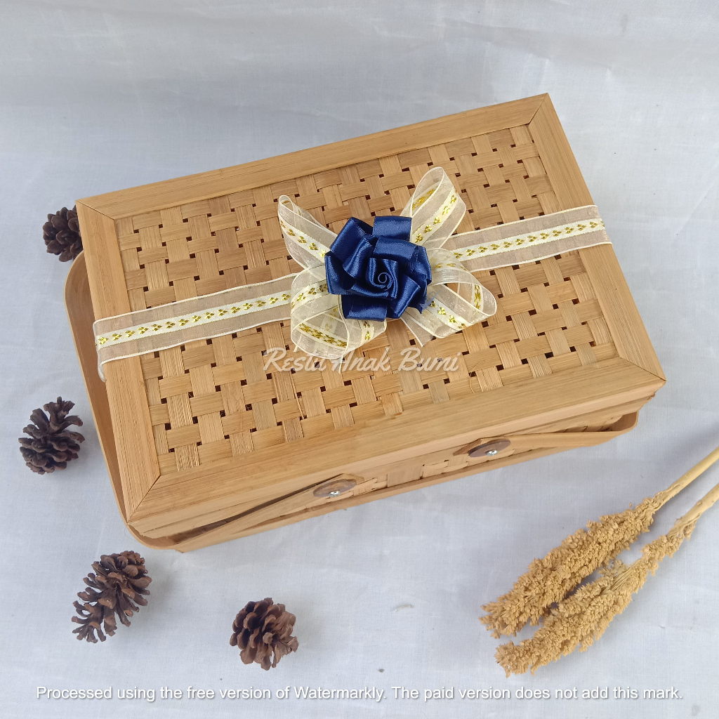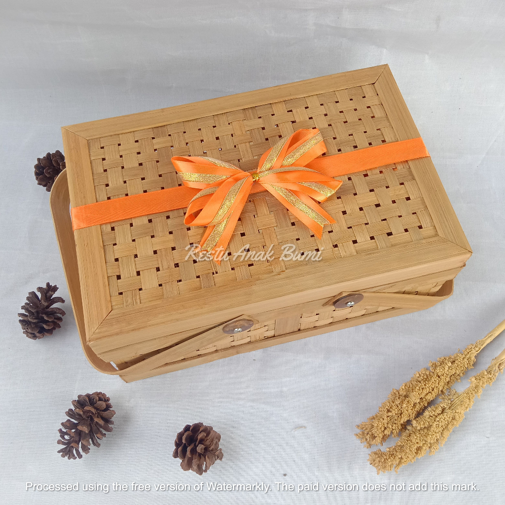 Rantang Persegi Panjang 30 x 20cm & 28x18cm Pita | rantang kotak anyaman bambu | wadah hampers kotak bambu | box hantaran bambu | tempat wajik kemasan | hampers makanan | seserahan unik | hampers bambu | wadah kue kering | wadah buah ( R2030 )
