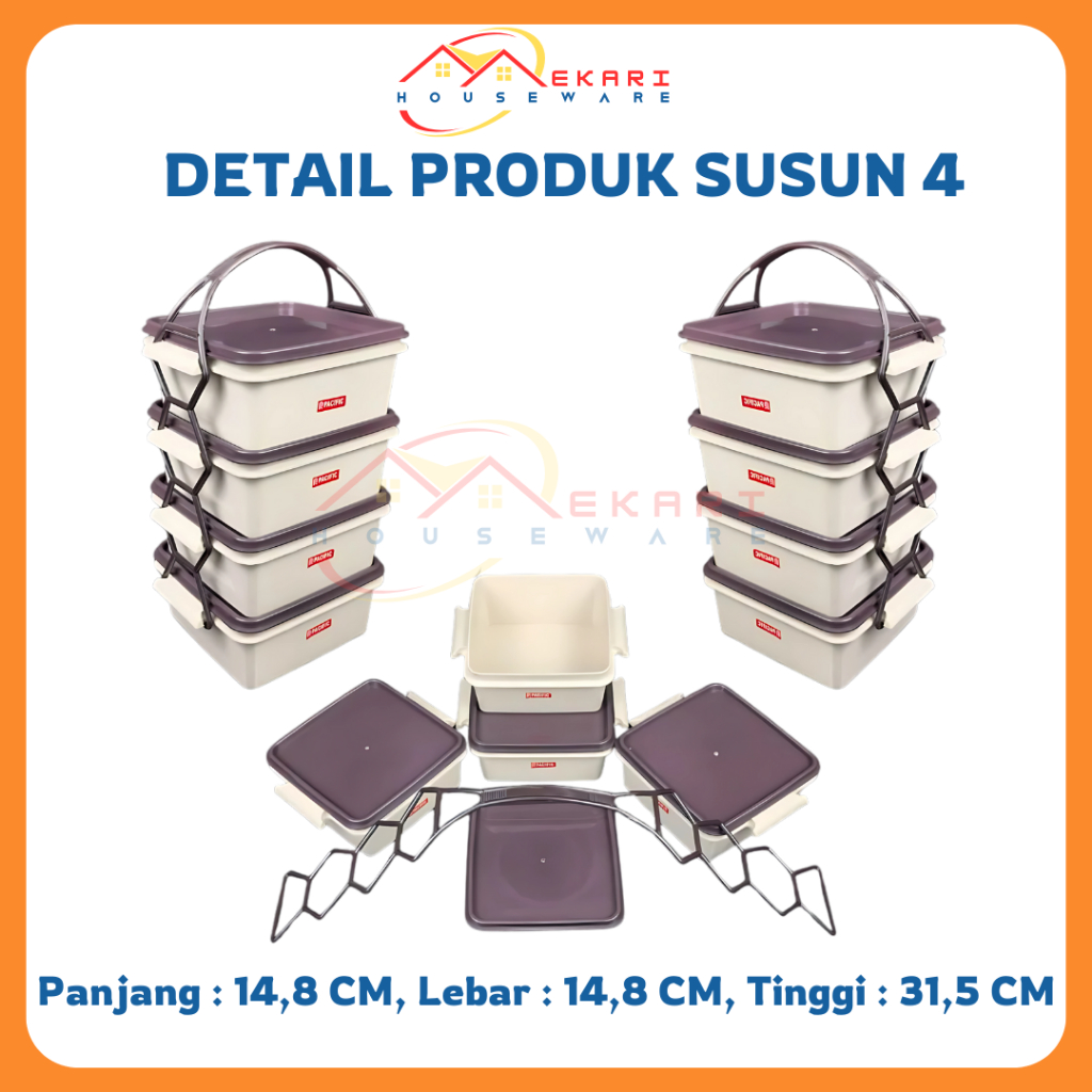 Rantang Susun 2 Susun 3 Susun 4 Persegi Plastik Tempat Bekal Bontot Rantang Piknik Souvenir Mocca