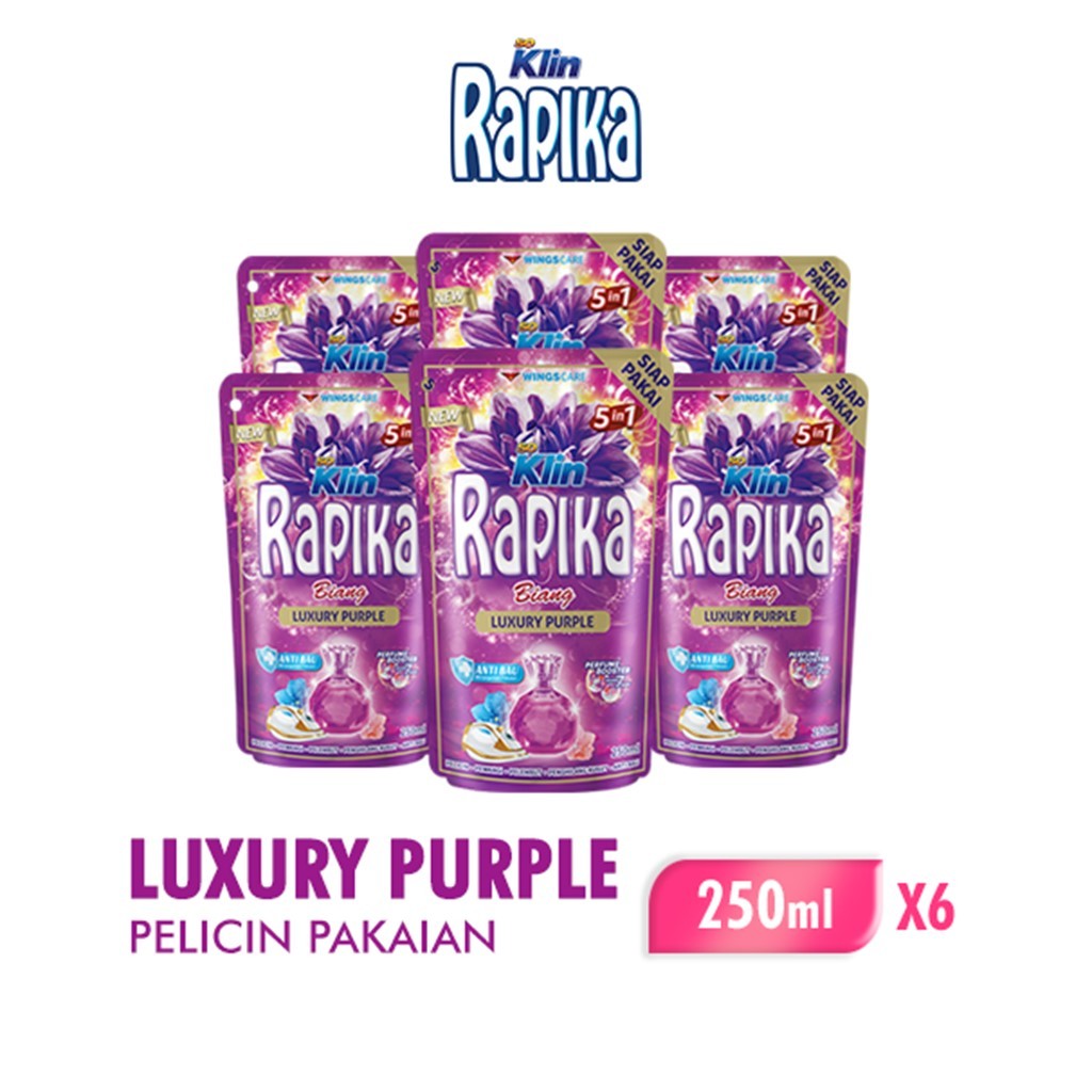 Rapika Biang Pewangi Pakaian Ungu Luxury Purple Pouch 250 ml x6