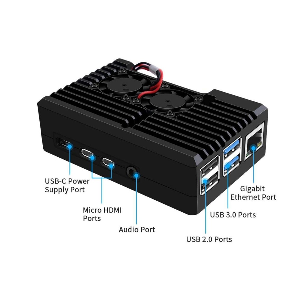 Raspberry Pi 4 Armor Case With Dual Cooling Fan - Passive Aluminum Alloy Case for Model B (With 2510 Fan)