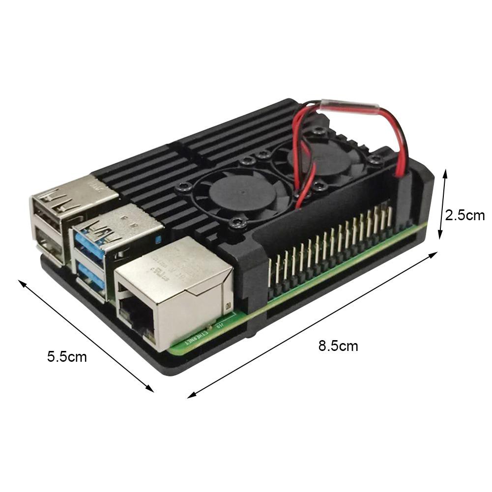Raspberry Pi 4 B Metal Case ARMOR BLACK Double / Dual Cooling Fan Aluminium Heatsink Enclosure Box