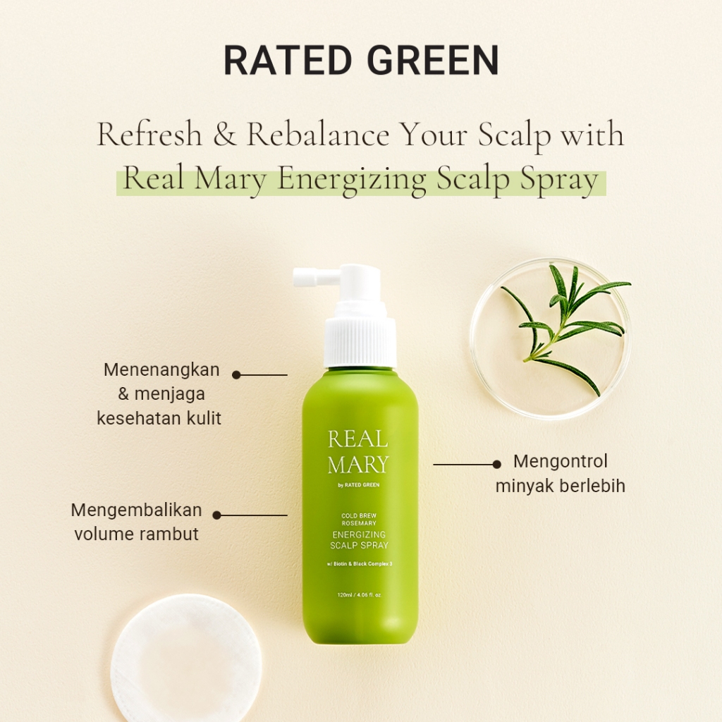 Rated Green Real Mary Energizing Scalp Spray - 120 ml - Tonik Rambut Berminyak dan Lepek - Hair Care