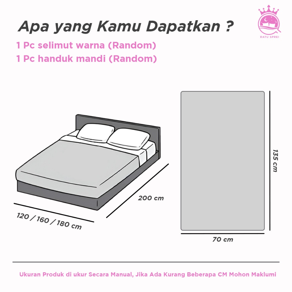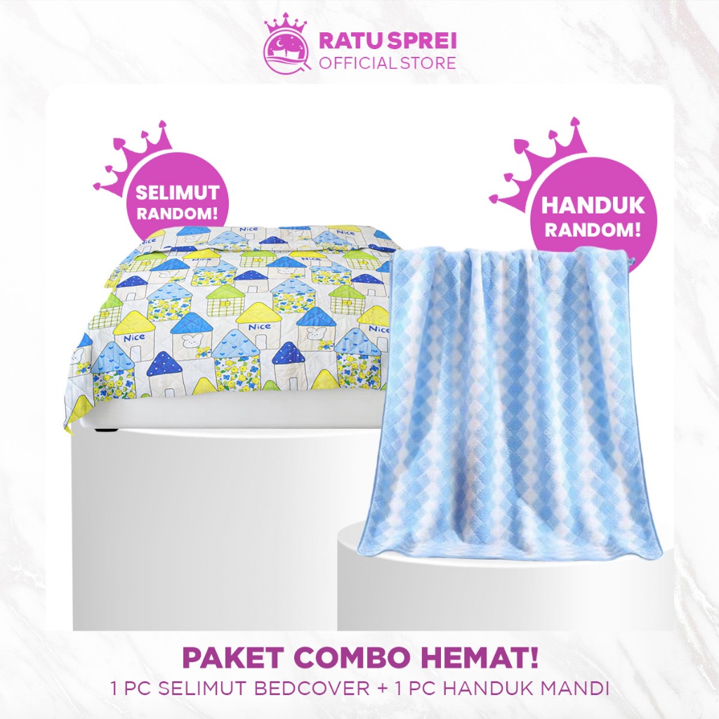 Ratu Sprei - Paket Hemat Selimut dan Handuk Bedcover Motif Random 3 Ukuran + Handuk Mandi Dewasa
