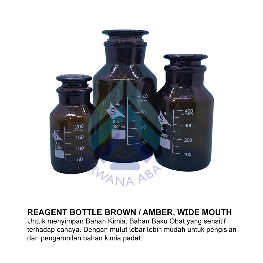Reagen Botol 125ml Coklat Mulut Lebar RRC, Reagent Bottle Amber Wide Mouth