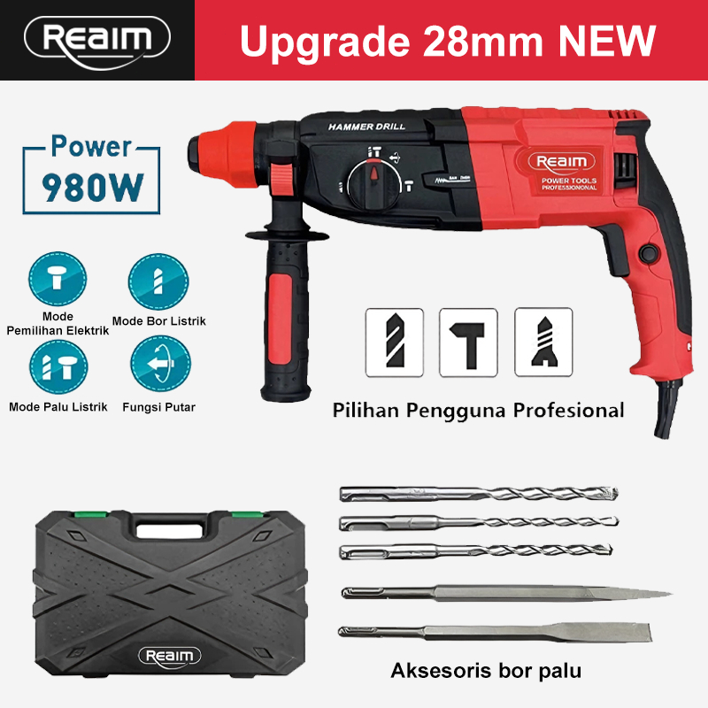 Reaim Hammer Drill 26MM Mesin Bor Bobok Beton 3In1 Palu Besi Baja Asli Palu Besi Palu Multifungsi