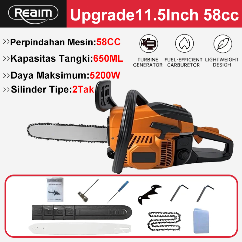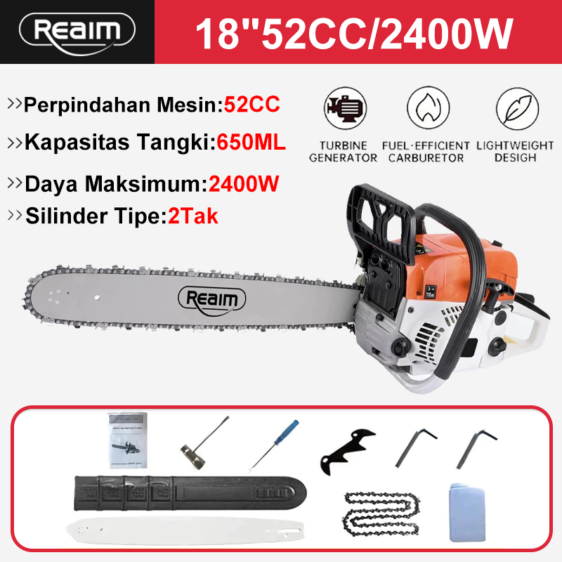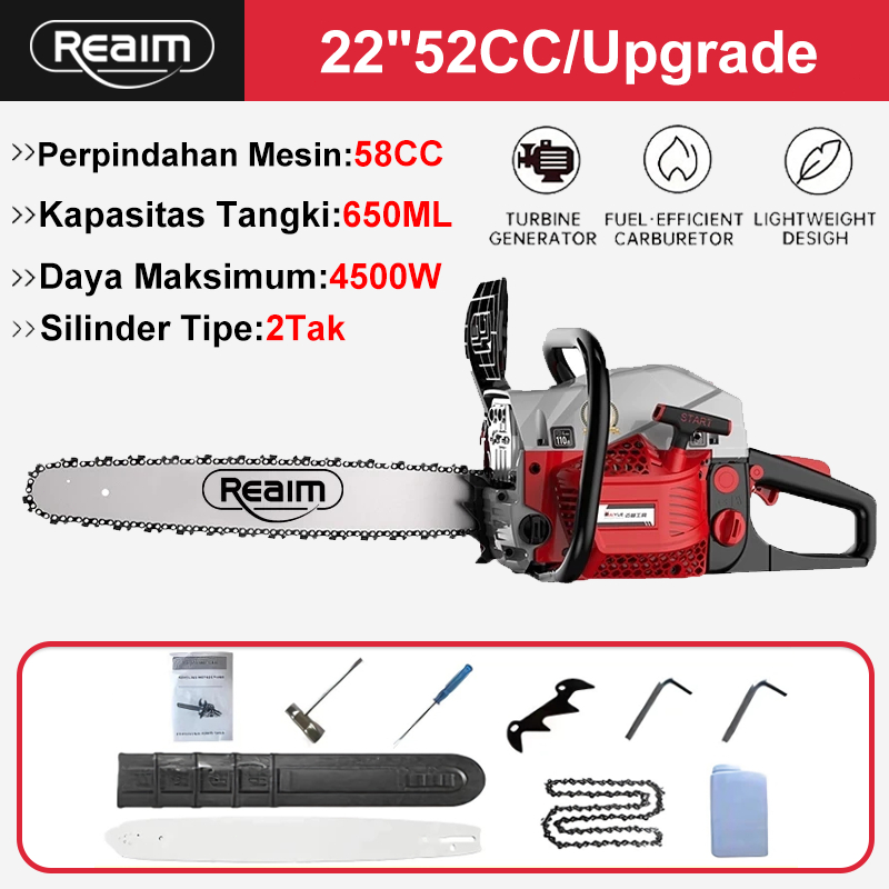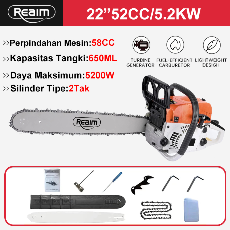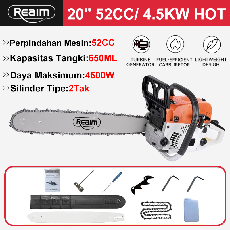 Reaim Mesin Potong Kayu 52CC Mesin sinso senso Chainsaw 2Tak 20inch Gergaji Potong Pohon Kayu GERGAJI MESIN POTONG