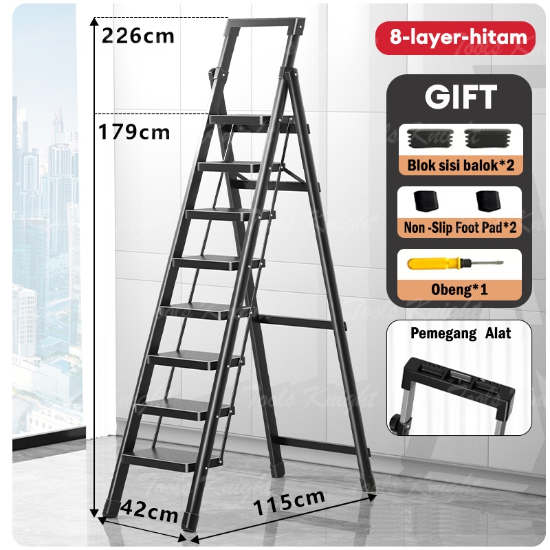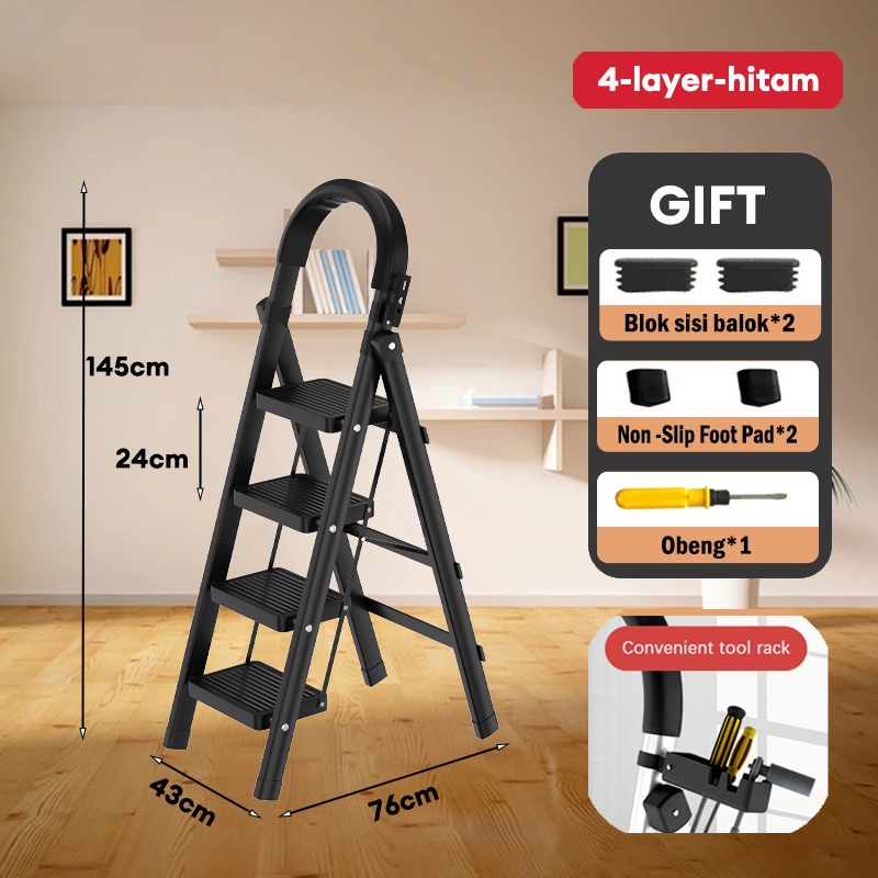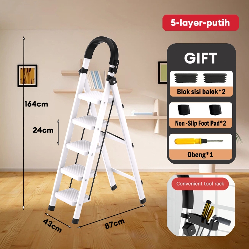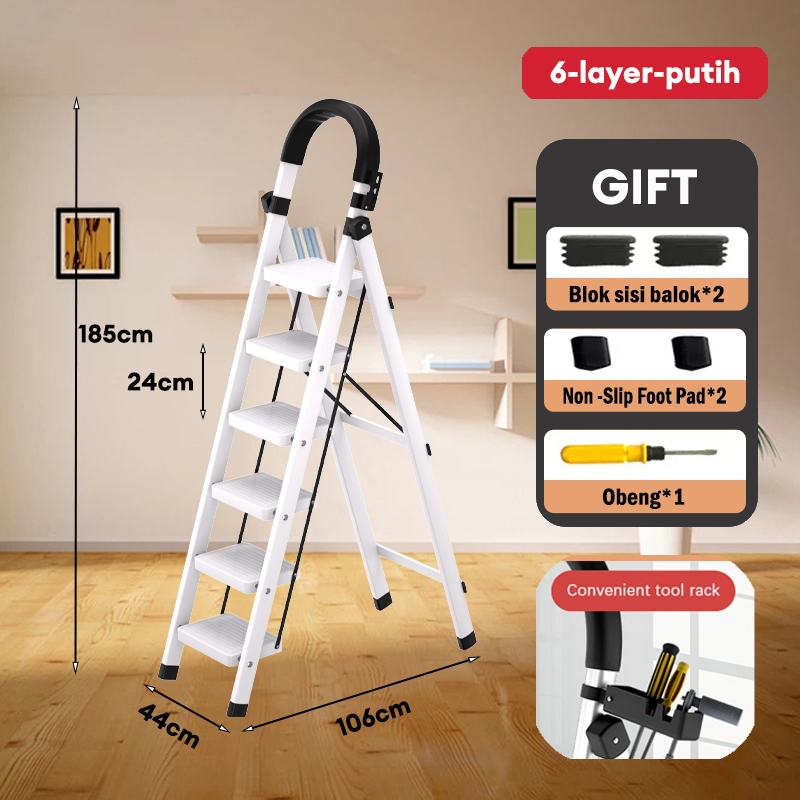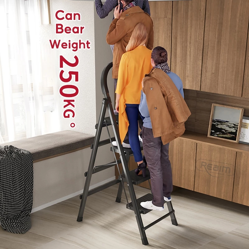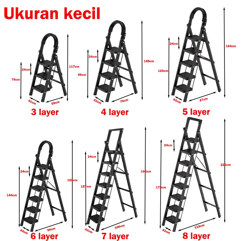 Reaim Tangga 3/4/5/6/7/8 Step Tangga lipat aluminium Putih/Hitam/Merah Tangga Lipat Multifungsi Lipat Ladder pedal ekstra lebar Desain Lipat Lipat Tangga Besi Lipat Household Steel Ladder