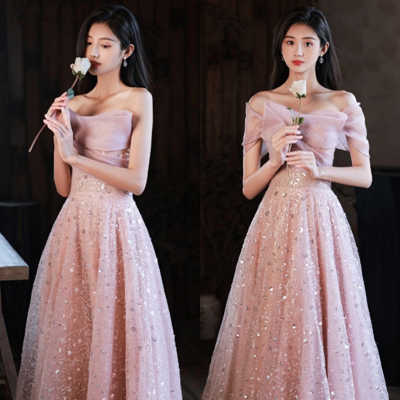 Realpic G873 XS-2XL Bisa custom 3-in-1 Gaun bridal mewah impor gaun pink bling bling gaun pesta sabrina