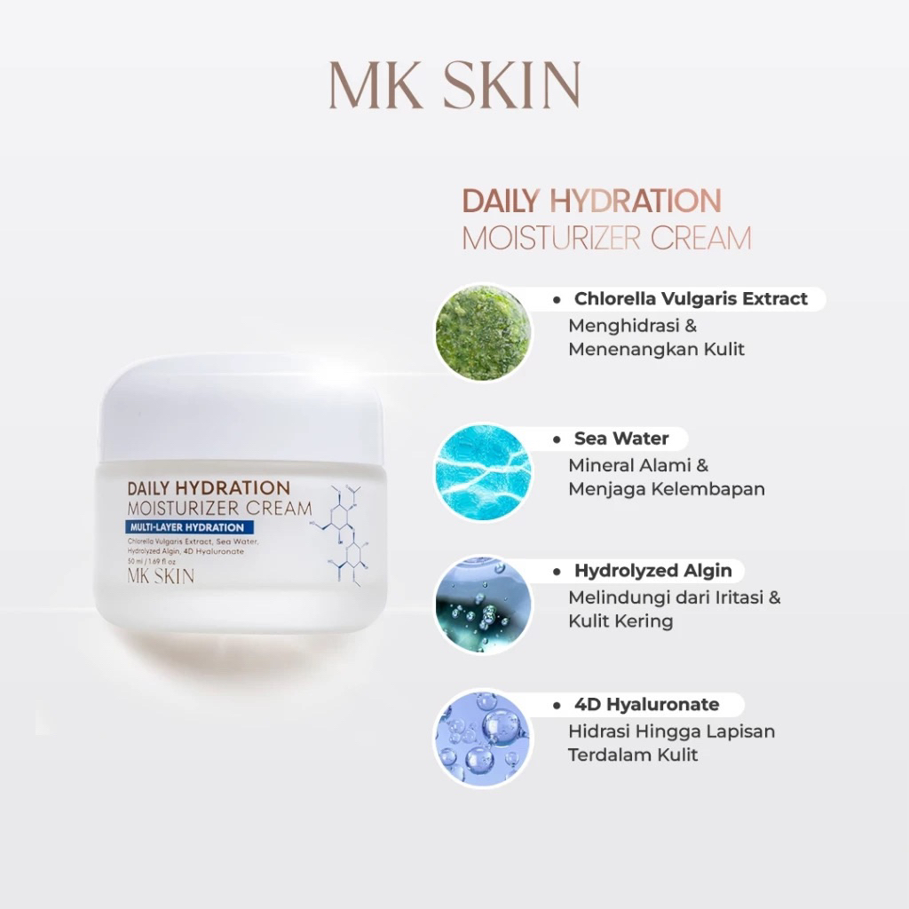 [READY STOCk] MK SKIN - Moisturizer Cream - Pelembab Wajah untuk Kulit Sensitif, kulit Normal, Kering, Acne Friendly - Melembabkan Kulit Seharian Tanpa Rasa Lengket