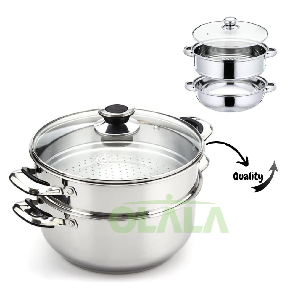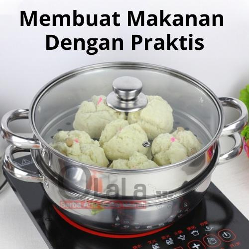 PANCI KUKUS 2 SUSUN STEAMER STAINLESS TUTUP KACA PANCI SIOMAY BOLU DIMSUM VIRAL PANCI 2 TINGKAT OLL-CH4512AA