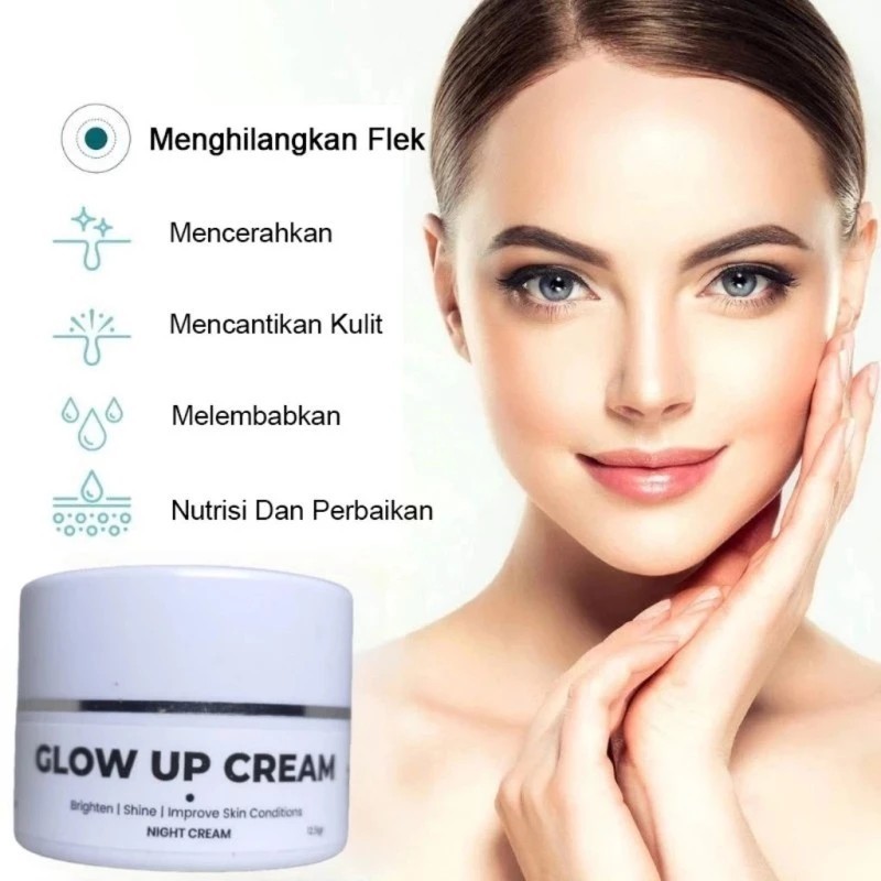 GLOW UP CREAM Night Cream - Krim Malam Pemutih & Pencerah, Bantu Kulit Regenerasi, Hasil Bangun Tidur Kulit Lebih Glowing & Lembut, 12.5gr