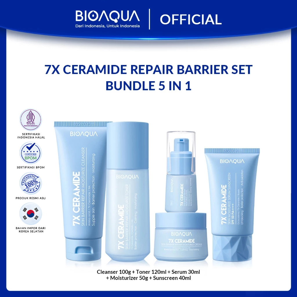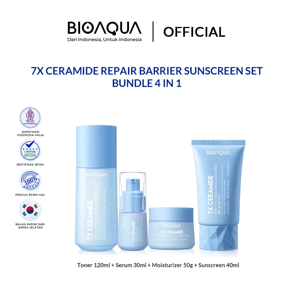 BIOAQUA 7X Ceramide Repair Barrier Sunscreen Sunblock Wajah Skincare With Moisturizer Cream / Hydrating Toner / Serum Wajah / Cleanser Facial Wash