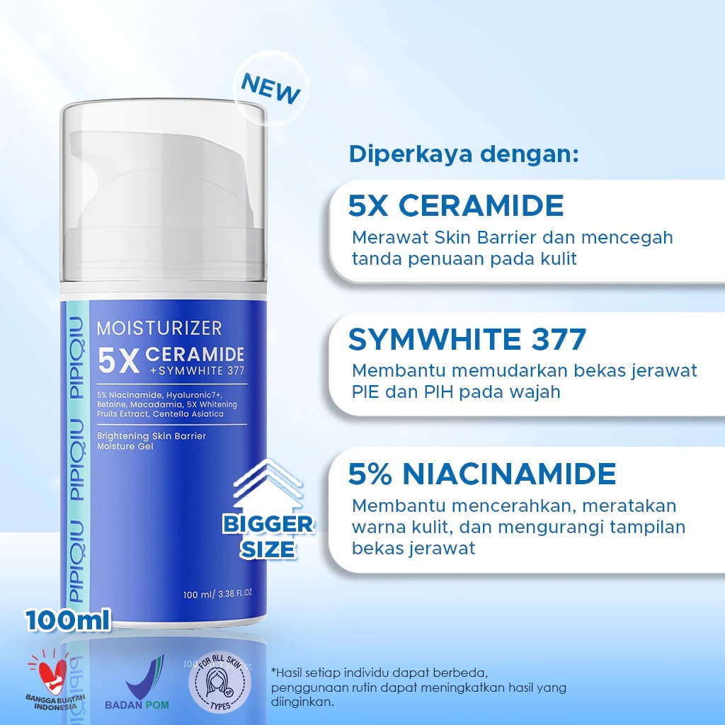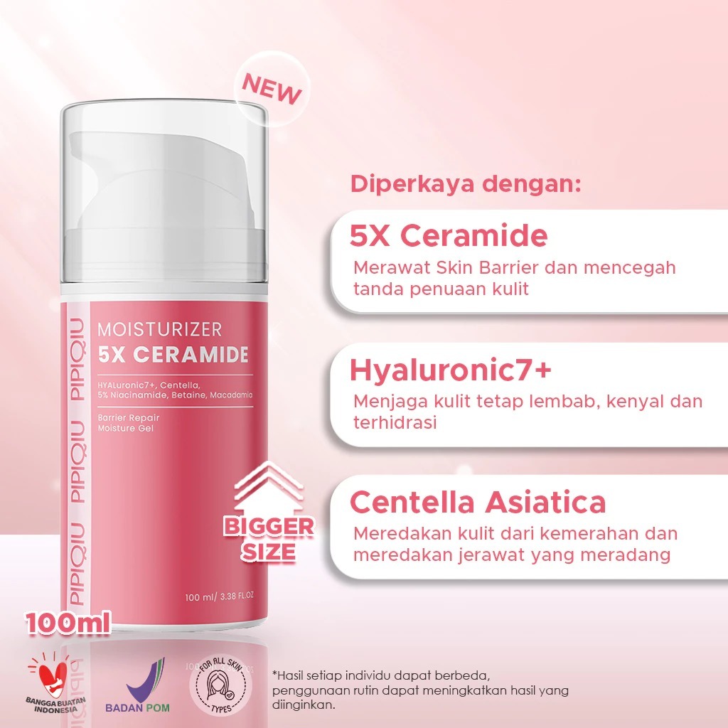 𝐑𝐀𝐃𝐘𝐒𝐀 - PIPIQIU Moisturizer 30gr & 100gr ( 5X Ceramide | 5X Ceramide+Symwhite | 5% Centella | 7% Panthenol | 10% Niacinamide )
