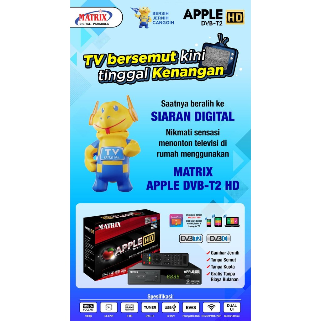 Receiver TV Set Top Box DVBT2 Matrix Apple HD TV Digital DVB T2 - Bisa Youtube