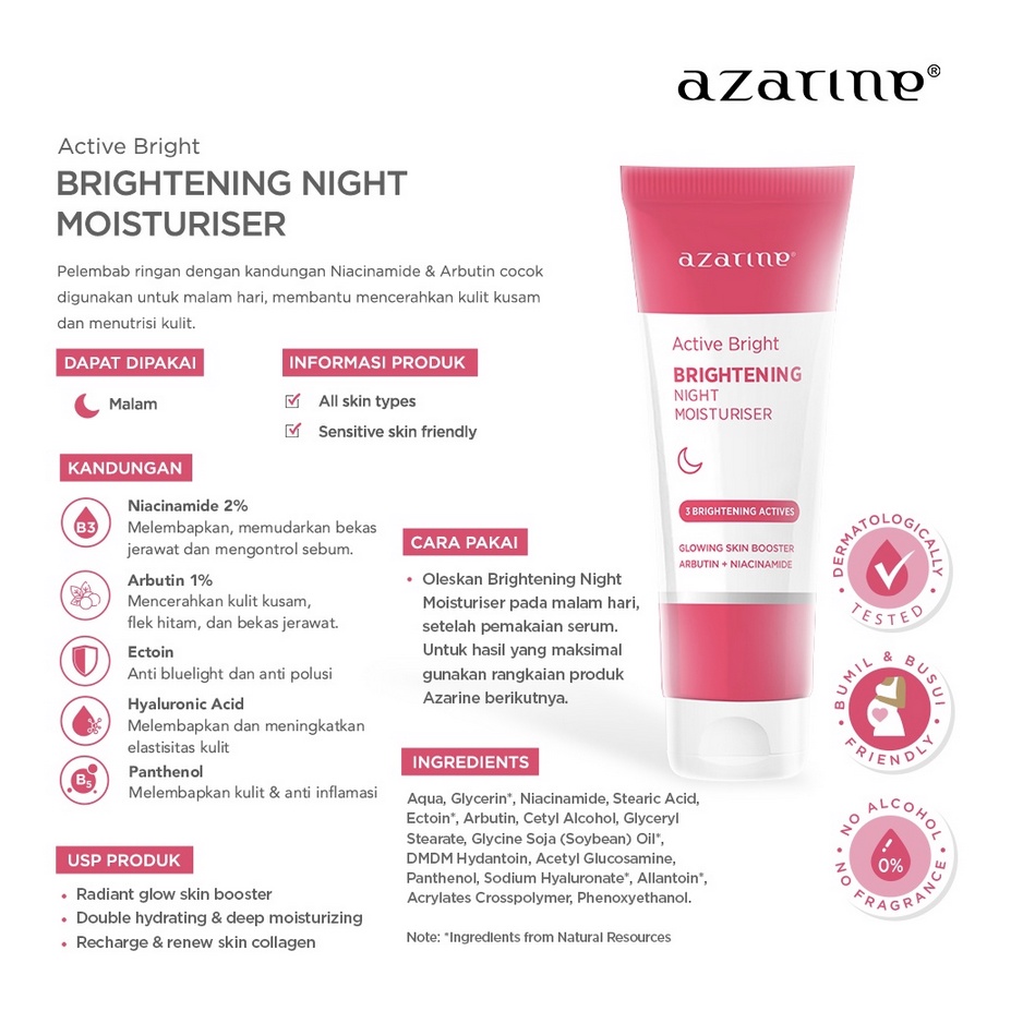 AZARINE Active Bright Brightening Day Moisturiser SPF 25++ // Night Moisturiser // Creamy Facial Foam