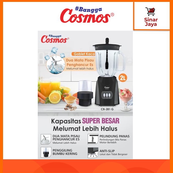 COSMOS CB-281 G Blender Kaca Big Capacity 2 Liter (2 in 1)