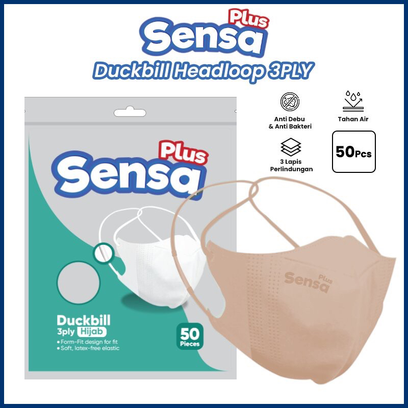 Masker Duckbill Hijab Headloop Sensa Plus 4ply 1 Box 50pcs