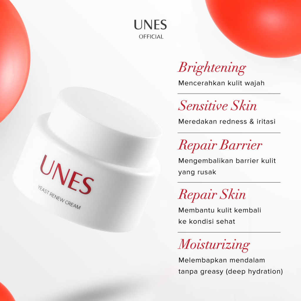 [NEW] UNES - AnaGF Moisturizer 3in1 Yeast Renew Repair Cream 50g Brightening Anti-Redness Radang Aging Primer Sleep Mask Strengthen Skin Barrier Rusak Meredakan Jerawat