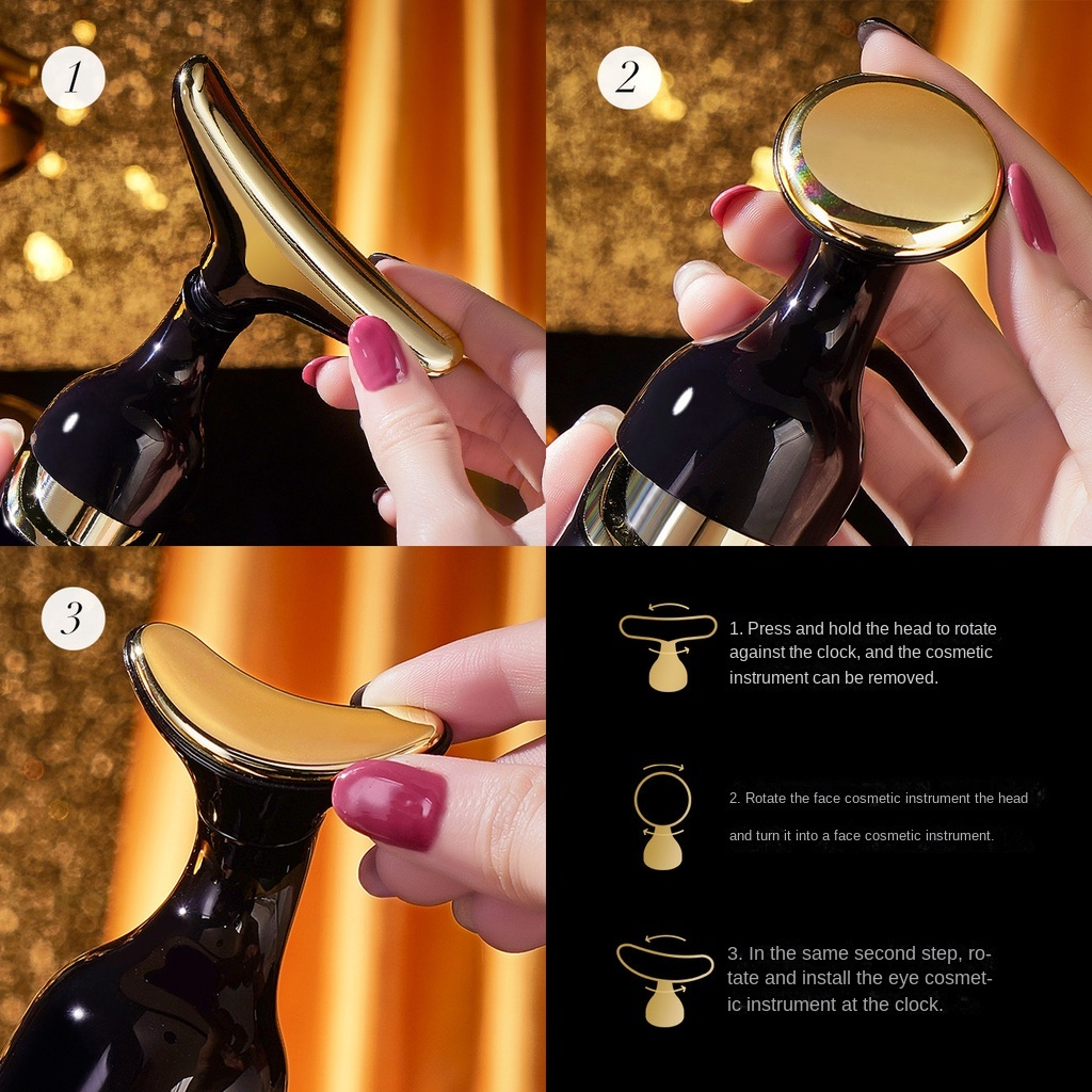 GOKOCO 3 in 1 Pink Alat Pijat Getar Multifungsi Untuk Kecantikan electric massage introducer massager essence Pengenalan Krim Wajah Leher Wajah Mata Pijat Facial Hitam