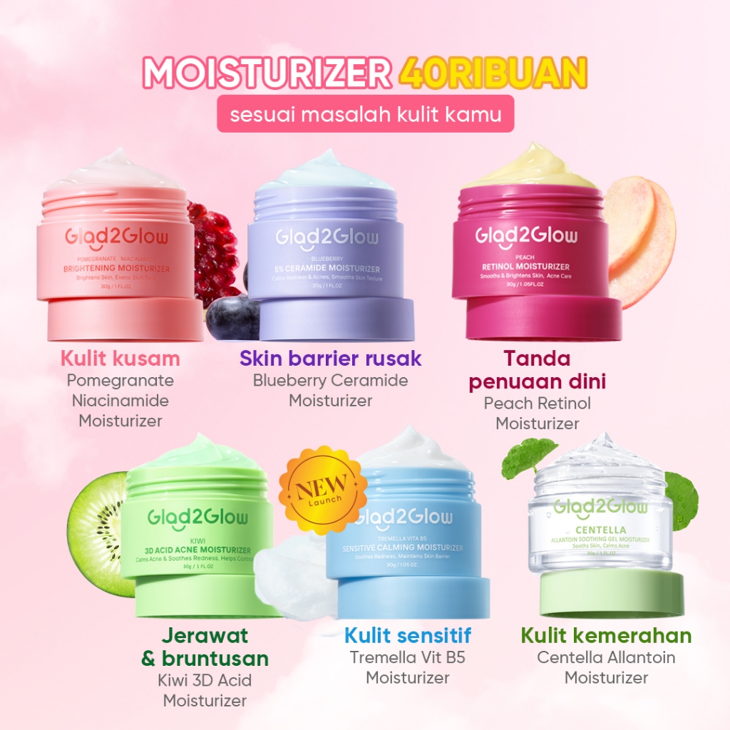 [100% ORI] Glad2Glow [ 1PC Persediaan ] Moisturizer -Pomegranate brightening moisturizer/Blueberry moisturizer/Centella allantoin soothing gel moisturizer/Peach retinol moisturizer/Yuja symwhite 377 dark spot moisturizer