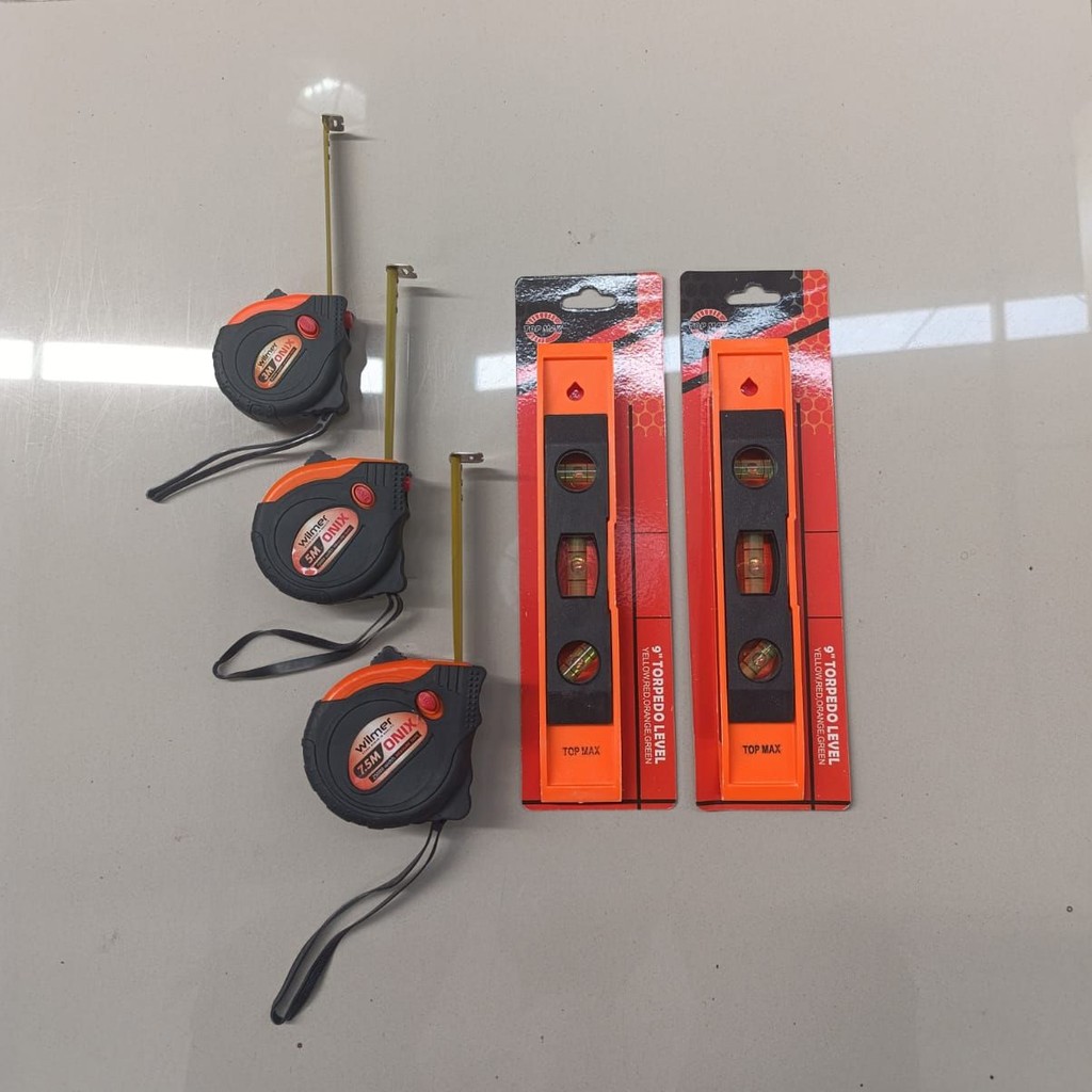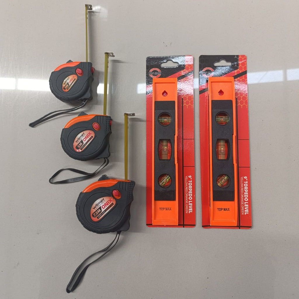 TRENDING PAKET HEMAT Waterpass Magnet Mini 225mm Water Pas Magnet Torpedo 9Inch + Meteran Tukang Akurat 5M Anti Slip Anti Debu | Alat Perkakas | Perlengkapan Kerja | COD