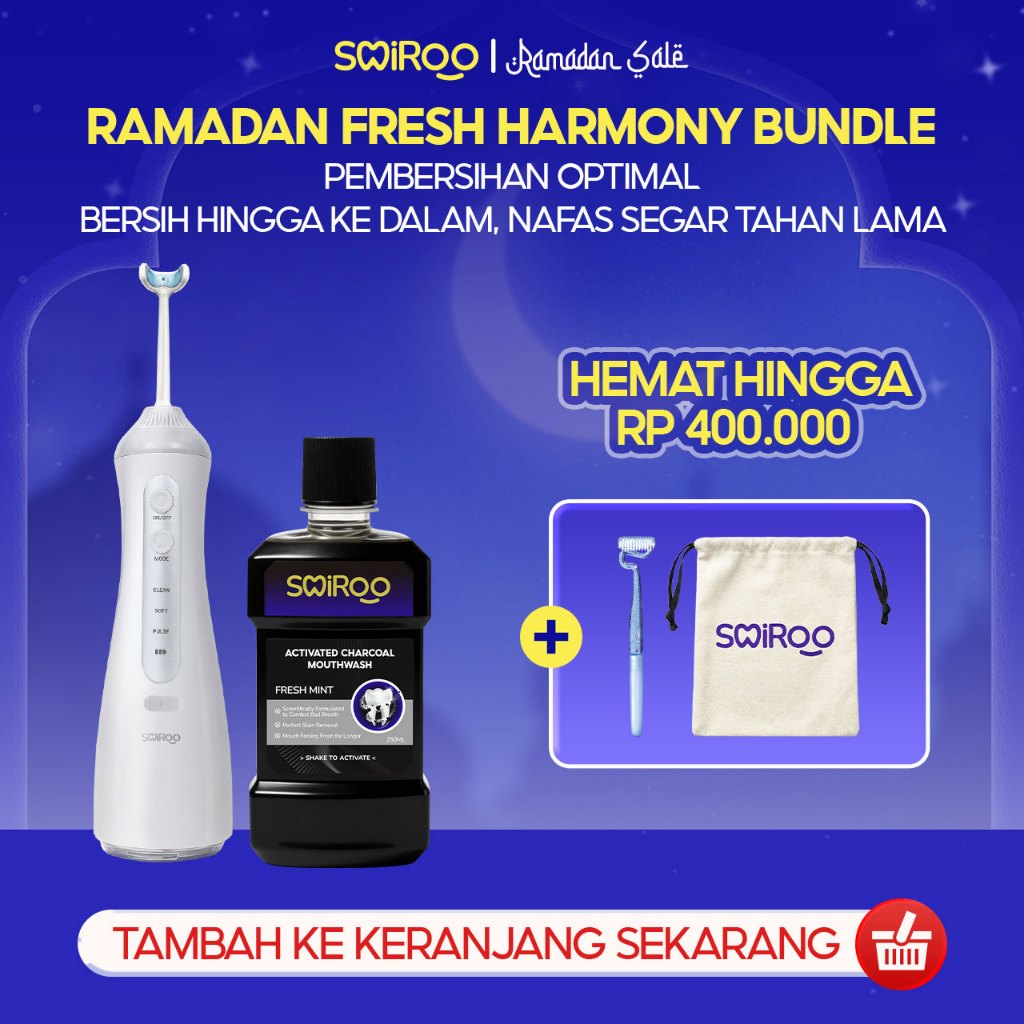 Smiroo Water Flosser & Charcoal Mouthwash Bundle | Bersihkan Mulut Secara Optimal, Napas Lebih Segar