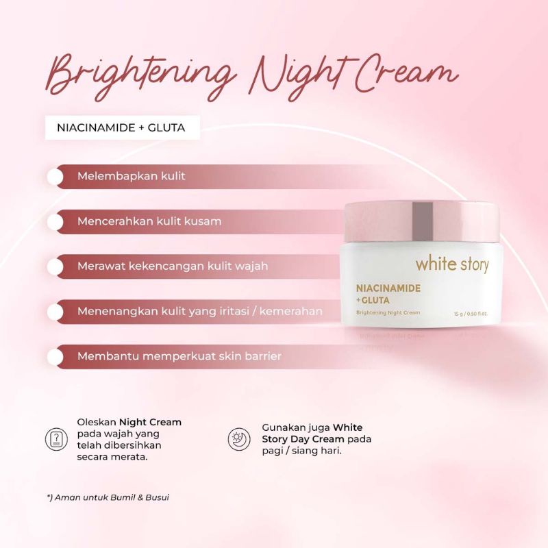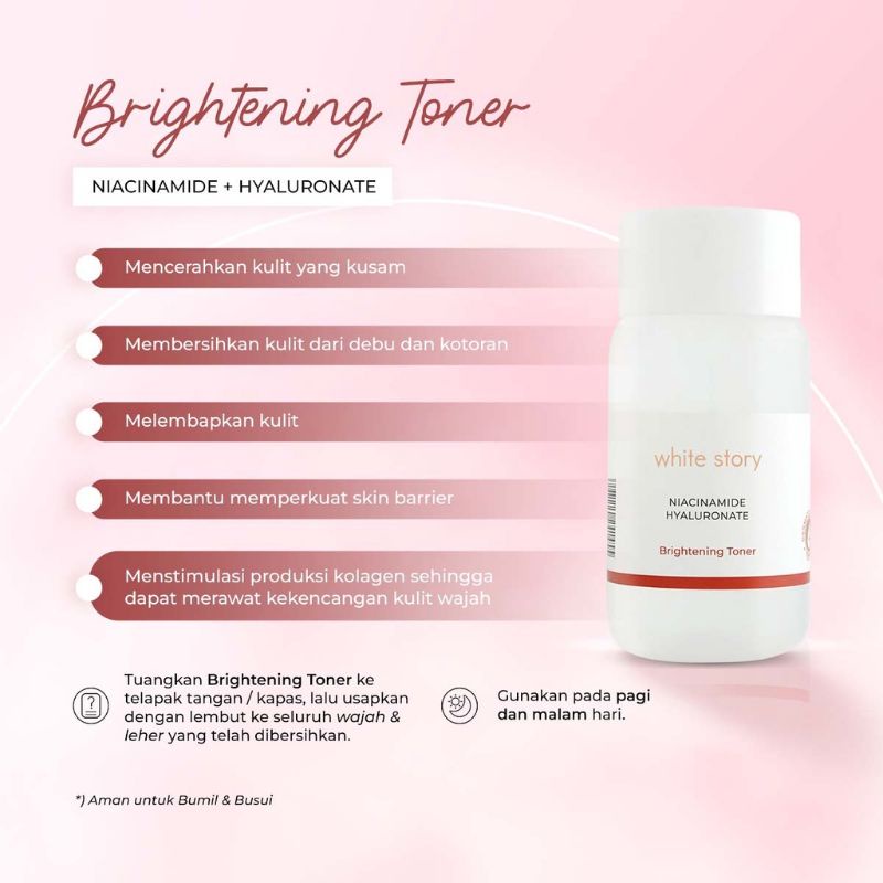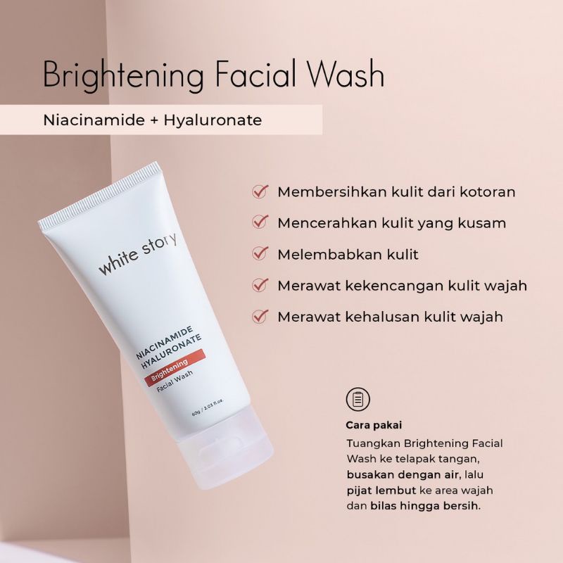 White Story Brightening Facial Wash, brightening serum , brightening toner , brightening day cream, brightening night cream, clay mask, eye cream, anti aging serum