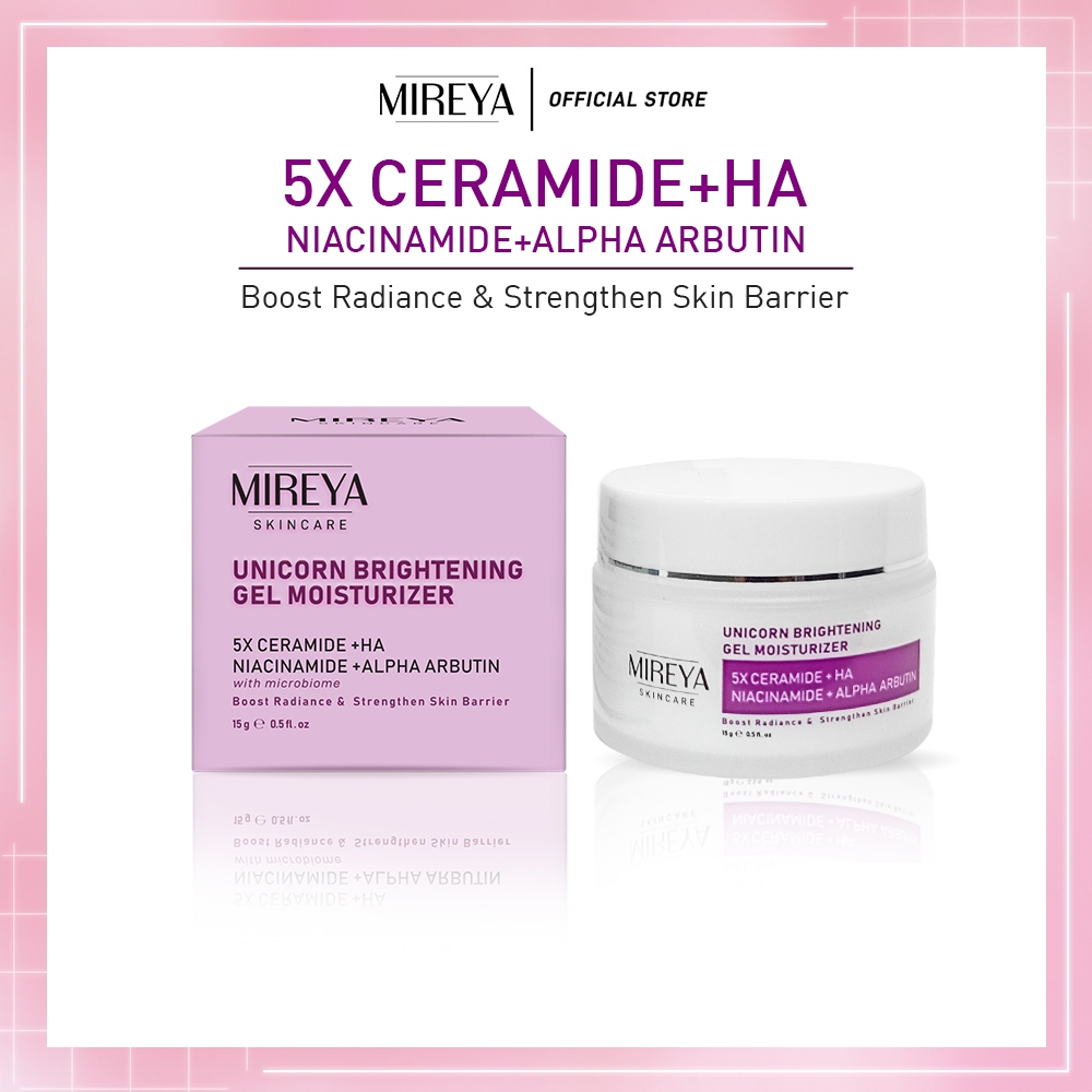 Mireya Unicorn Brightening Gel Moisturizer 15g – Pelembap Wajah dengan 5X Ceramide, Niacinamide & Alpha Arbutin | Mencerahkan & Menjaga Skin Barrier