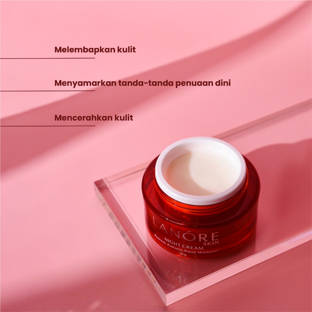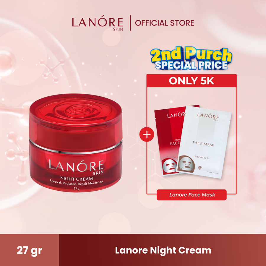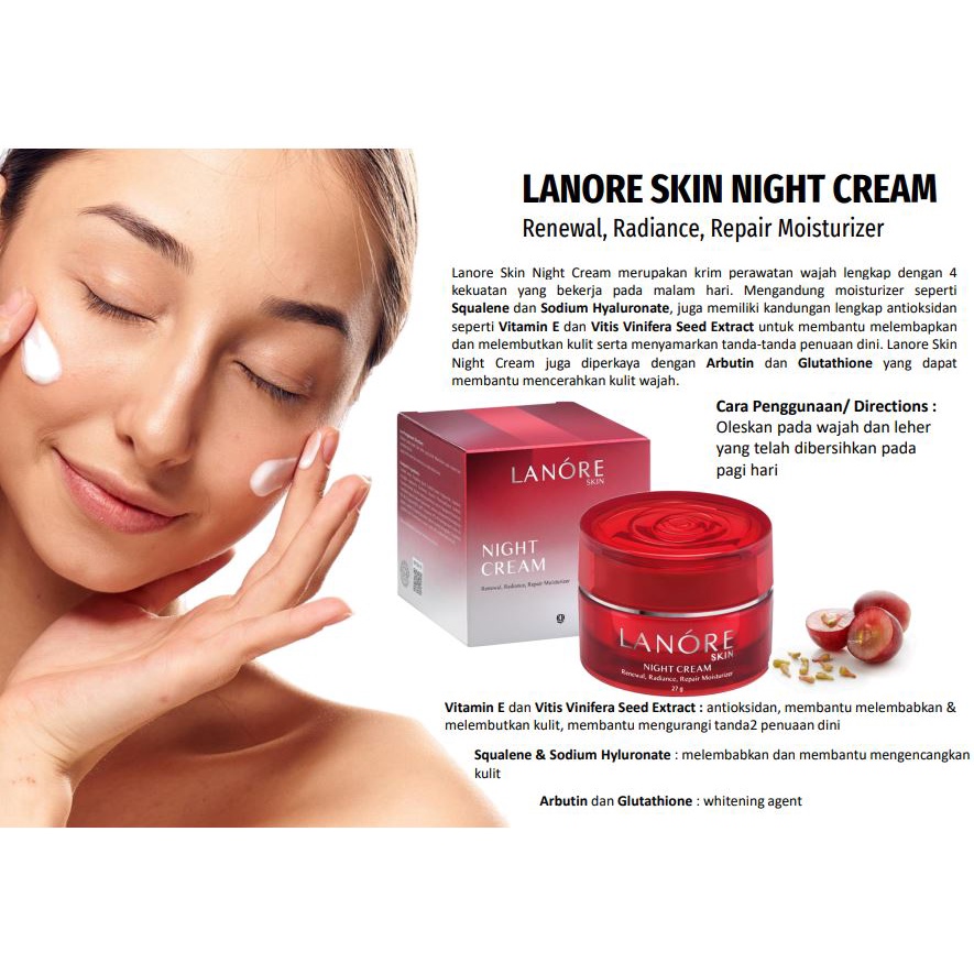 Lanore Skin Night Cream [ Krim Malam Melembapkan Mengencangkan Kulit Wajah Menyamarkan Kerutan Mengandung Arbutin dan Glutathione]