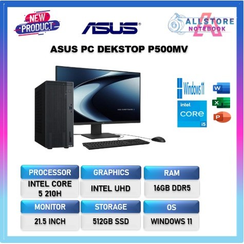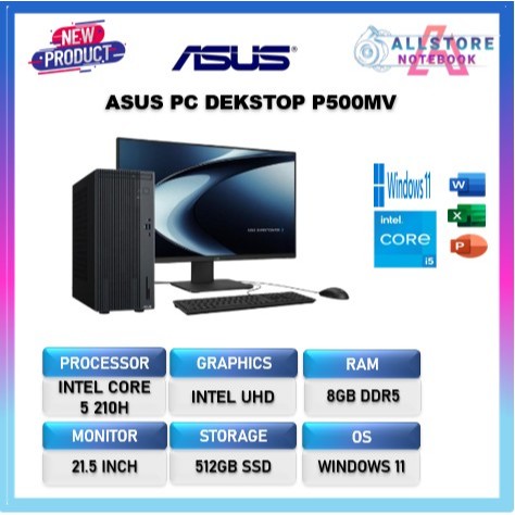 ASUS PC DESKTOP P500MV CORE 5 210H 8GB 512GB Win11+OHS -5850332WS +LED 21.5 inch