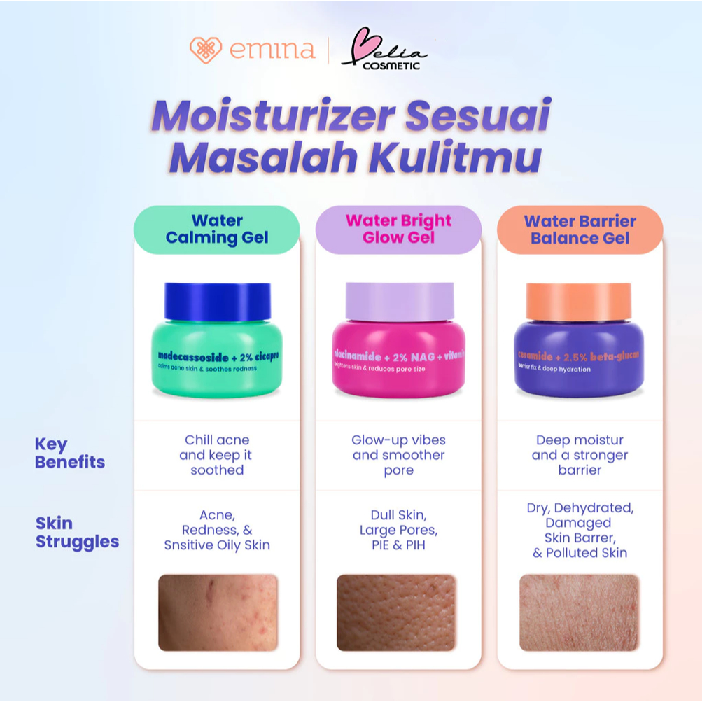 [ BELIA ] EMINA Water Gel Moisturizer 30g | Mencerahkan & Mengurangi Flek Hitam | 48H Menjaga Kelembapan