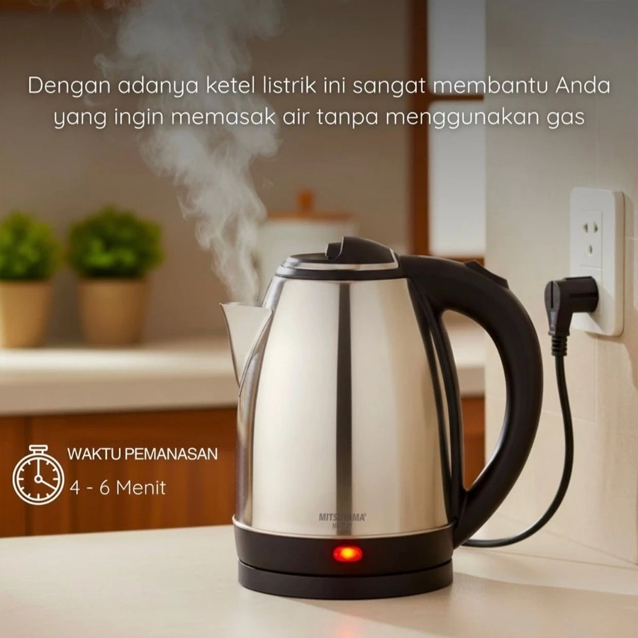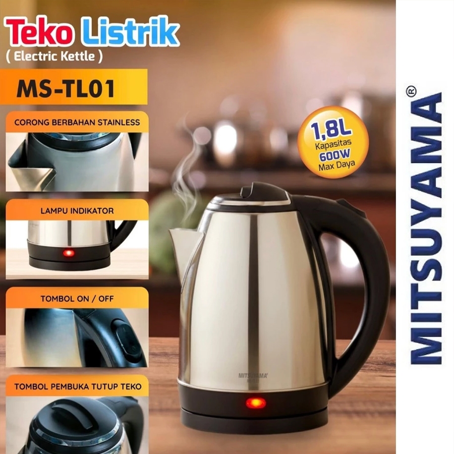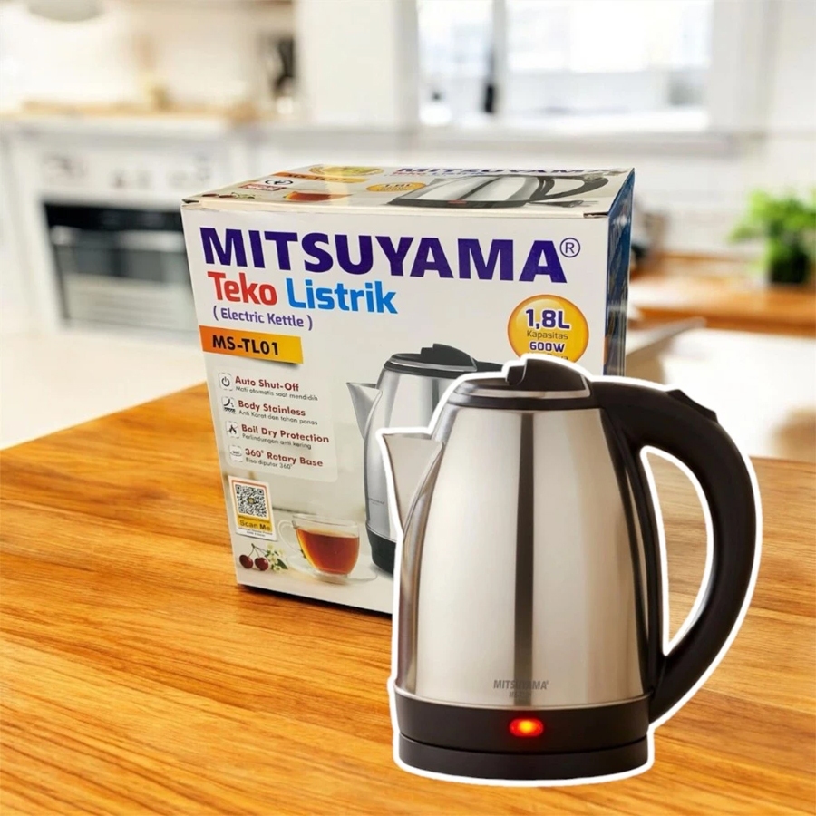 Mitsuyama Teko Listrik 1.8L MS-TL01 Electric Kettle Kapasitas 1.8L Maksimal Daya 600W